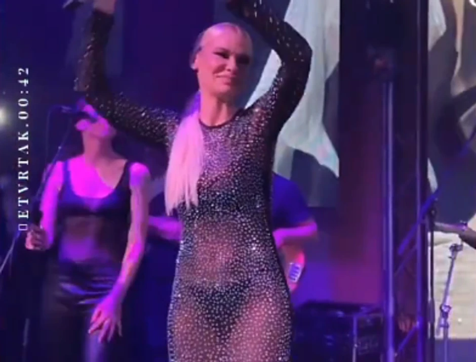 Naime, Bekvalčeva je na sebi imala skroz providnu haljinu koja je bila cela u šljokicama, a ispod nje je imala crne tange i crni brushalter, a najveći haos je nastao kada je okrenula leđa i pokazala pozadinu.
