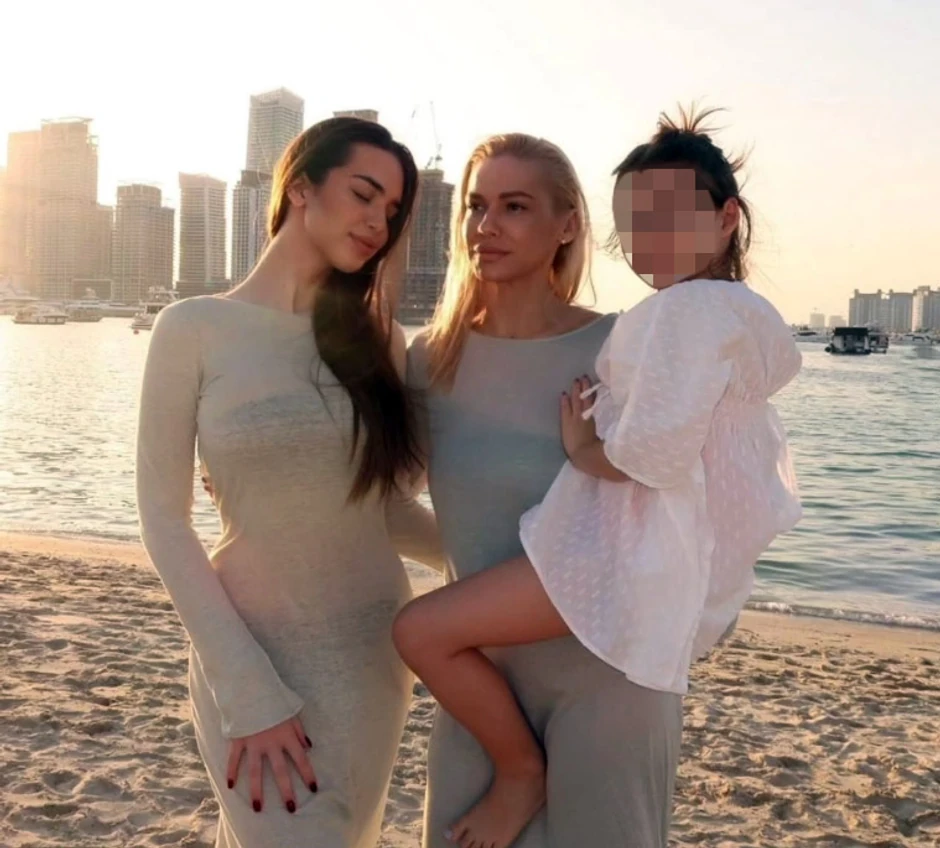 Njih tri pozirale su na plaži. Hana i Nataša su uparila bež haljine, ispod koIH se nazirao kupaći kostim, dok je Nataša držala malu Katju u naručju.