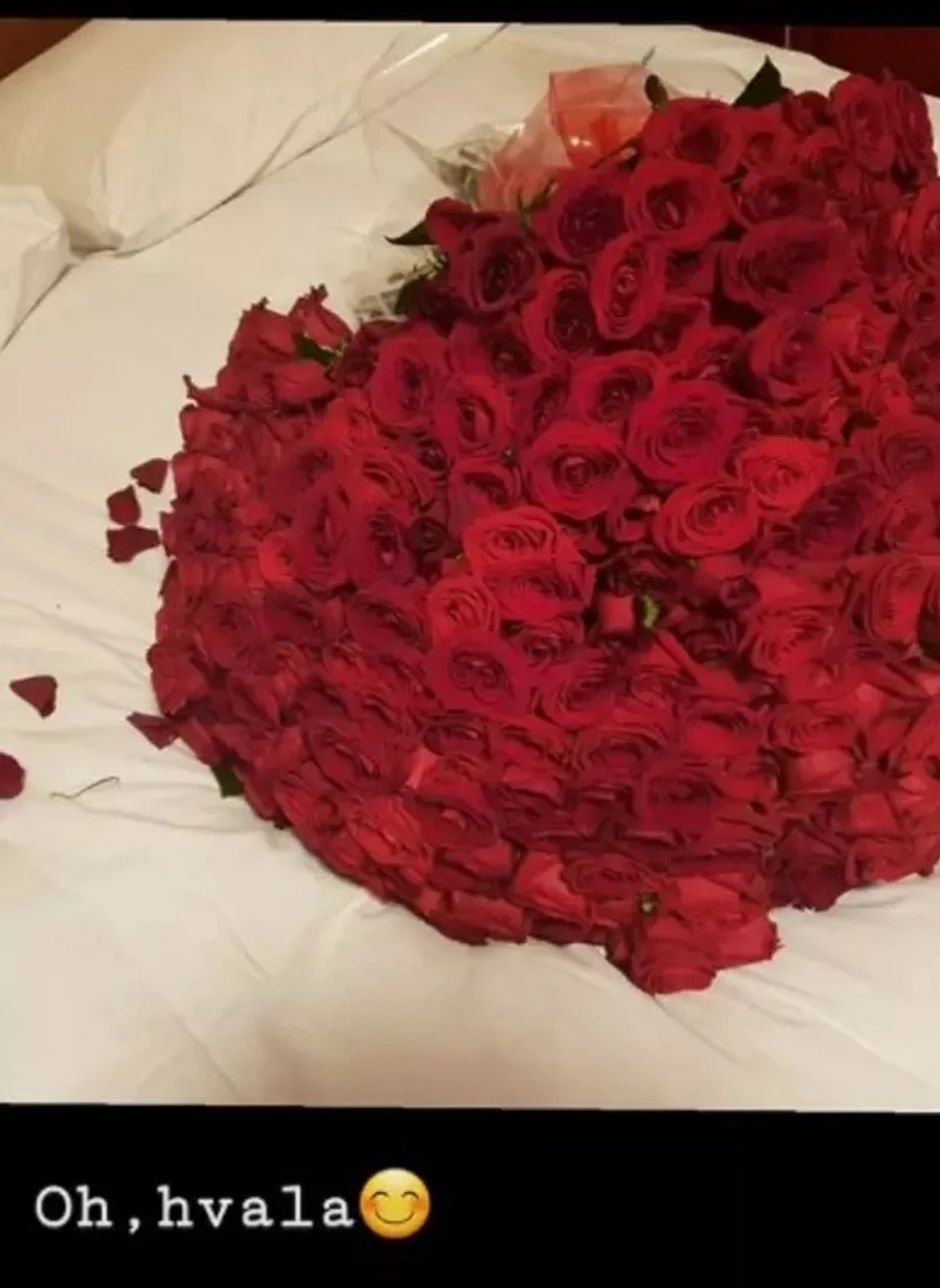 Nataša je na svom Instagram profilu iznenadila svoje pratioce kada je na storiju objavila fotografiju iz spavaće sobe, gde je uslikala krevet na kom se nalazio ogroman buket ruža.
