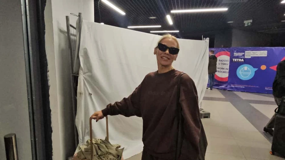 Nju smo zatekli na aerodromu "Nikola Tesla" gde je bila u potpuno opuštenom izdanju, u trenerci i sa vezanom kosom, dok je oči sakrila ispod sunčanih naočara, a na licu nije imala šminke.