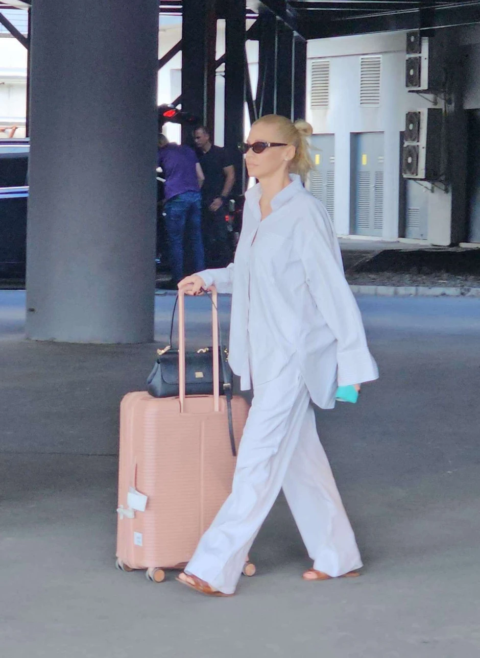 Danas smo uslikali pevačicu Natašu Bekvalac, koja je sa sobom nosila torbu i veliki kofer roze boje, koji je sama vukla.