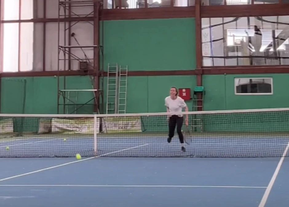 Ovoga puta, ona je objavila snimak sa teniskog terena i pokazala kako se zagreva, a potom igra meč