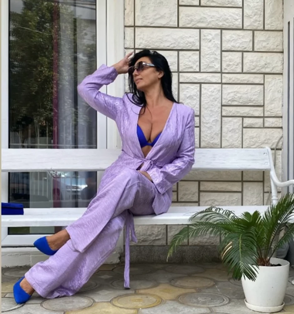 Pevačica Nela Bijanić pozirala je u ljubičastom kompletu, a u prvom planu su bile njene grudi, što je svima zapalo za oko.