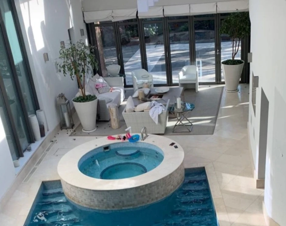 Nemanja je, naime, na svom Instagram profilu pokazao unutrašnjost kuće u kojoj je veliki bazen u kome su se njihova deca igrala, đakuzi i teretana na spratu.