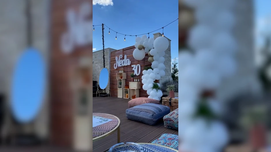 Nedović je pokazao dekoraciju za rođendansku proslavu, a u prvi plan su beli baloni, lampioni, ogromni jastuci po podu i sve je u boho stilu. Zanimljivo je da nasred dvorišta postavljeno i ogledalo.