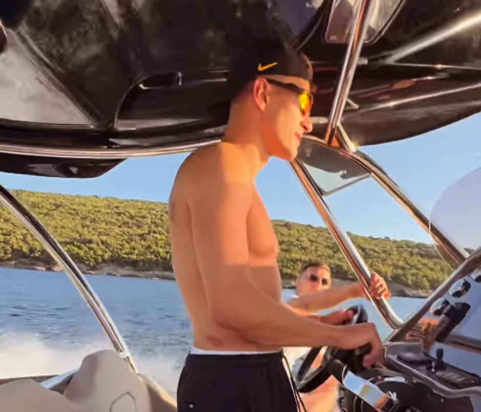 Nedović je upravljao brodom, dok su njihove lepše polovine uživale na zadnjim sedištima. Ovom prilikom košarkaš je snimio i Minu, koja izgleda savršeno u kupaćem kostimu.