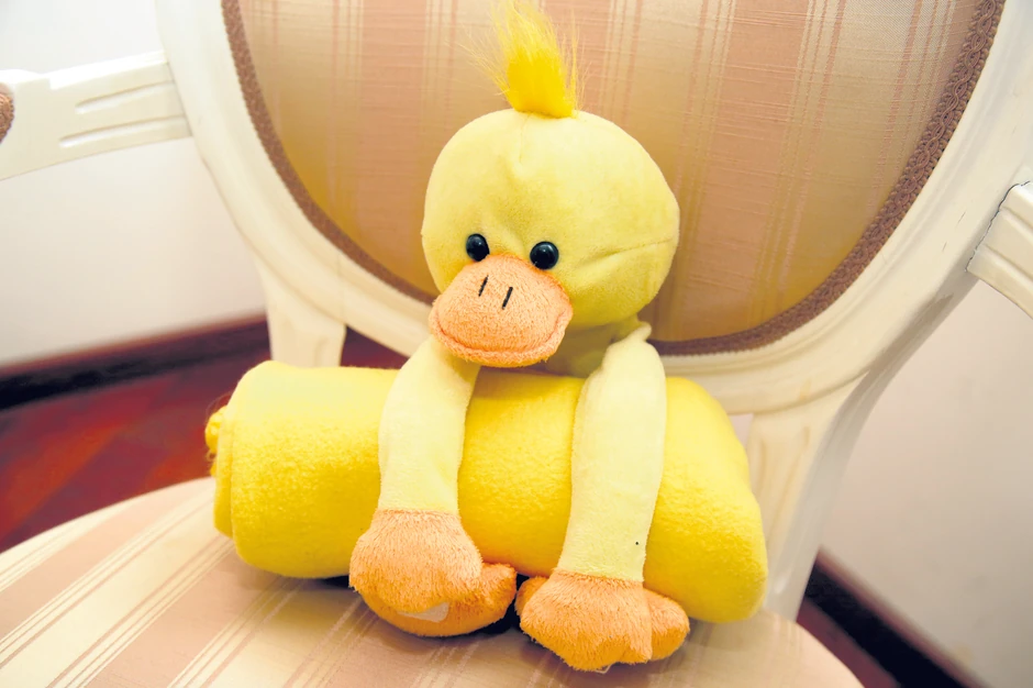 Na stolici je i ćebence u obliku pačeta koje je posebno drago Vanji.