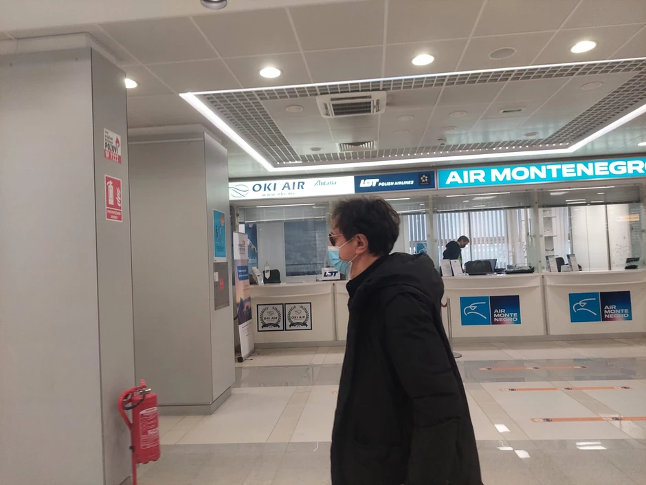 Bregović je bio sam, vukao je mali kofer i užurbano izašao sa aerodroma.