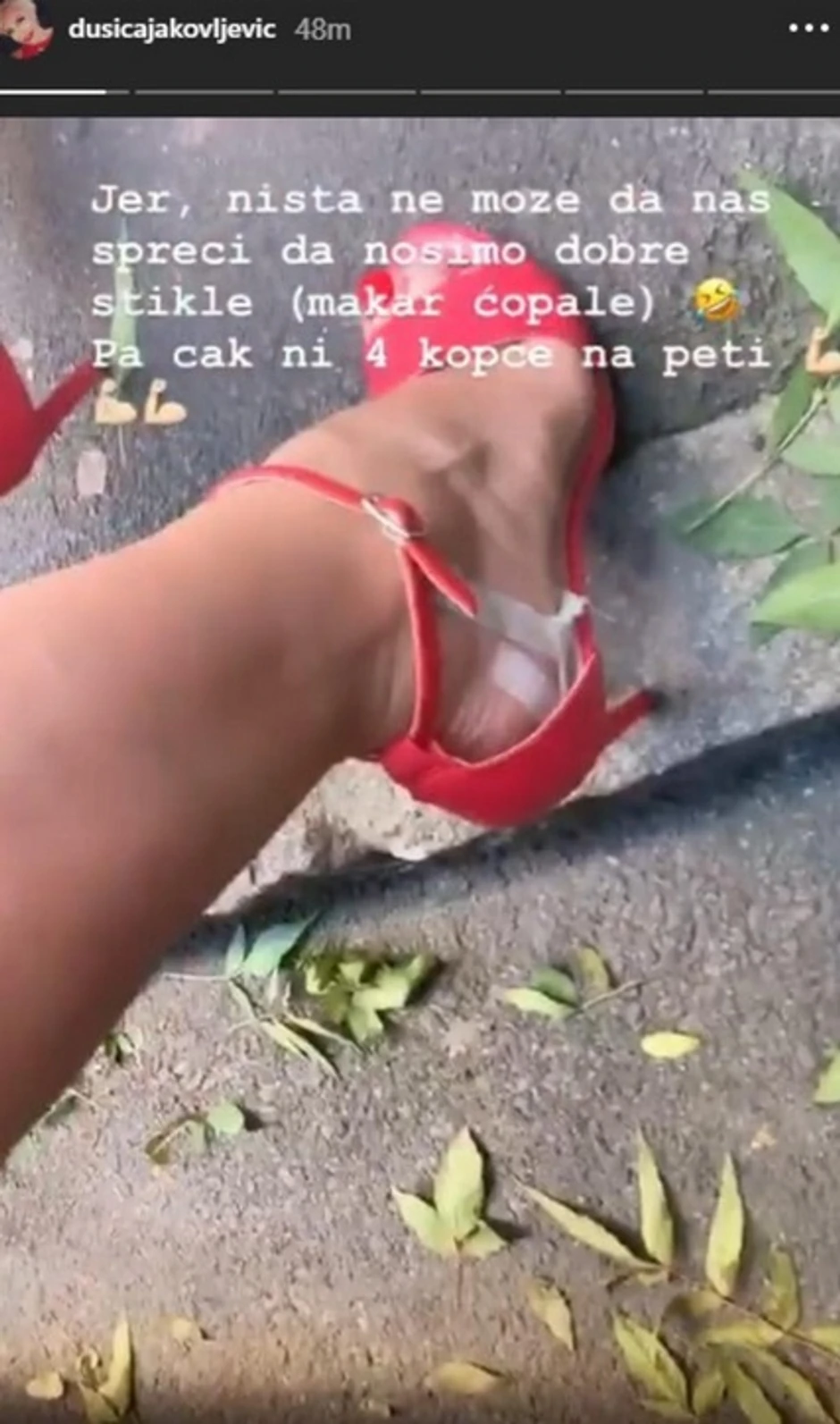 - Jer ništa ne može da nas spreči da nosimo dobre štikle, pa čak ni 4 kopče na peti - napisala je Dušica uz fotografiju koju je objavila na društvenim mrežama.