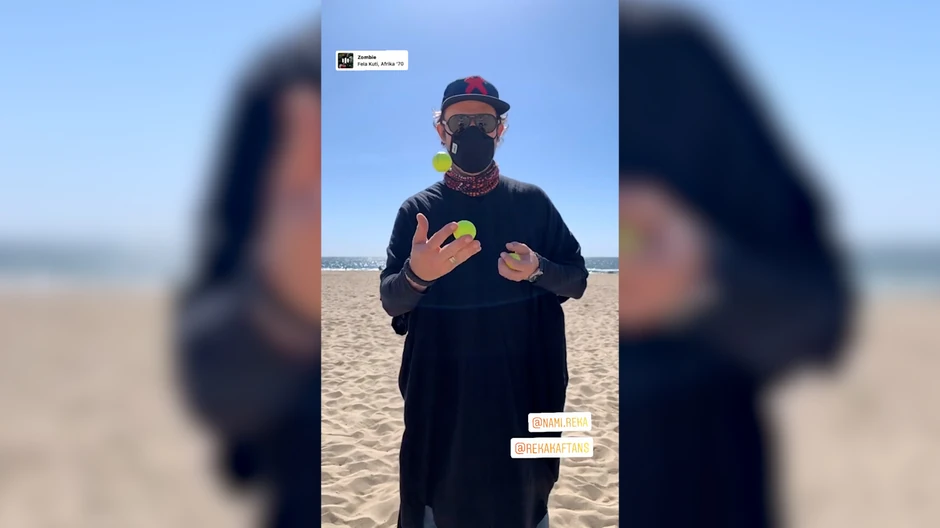 Naime, on je neobično obučen, u crnu odoru sa masok, naočarima i kačketom na plaži žonglirao sa tri loptice.