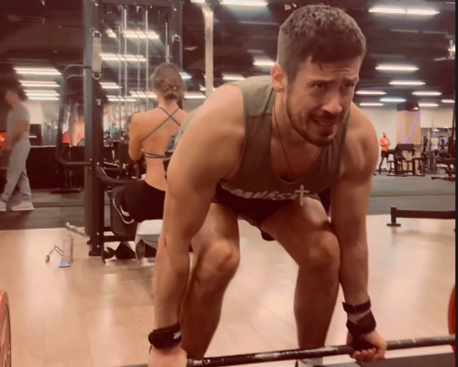 Rokvić se snimio u kratkom šortsu i majici na bretele dok je podizao tegove, a na telu se svaki mišić ocrtavao.