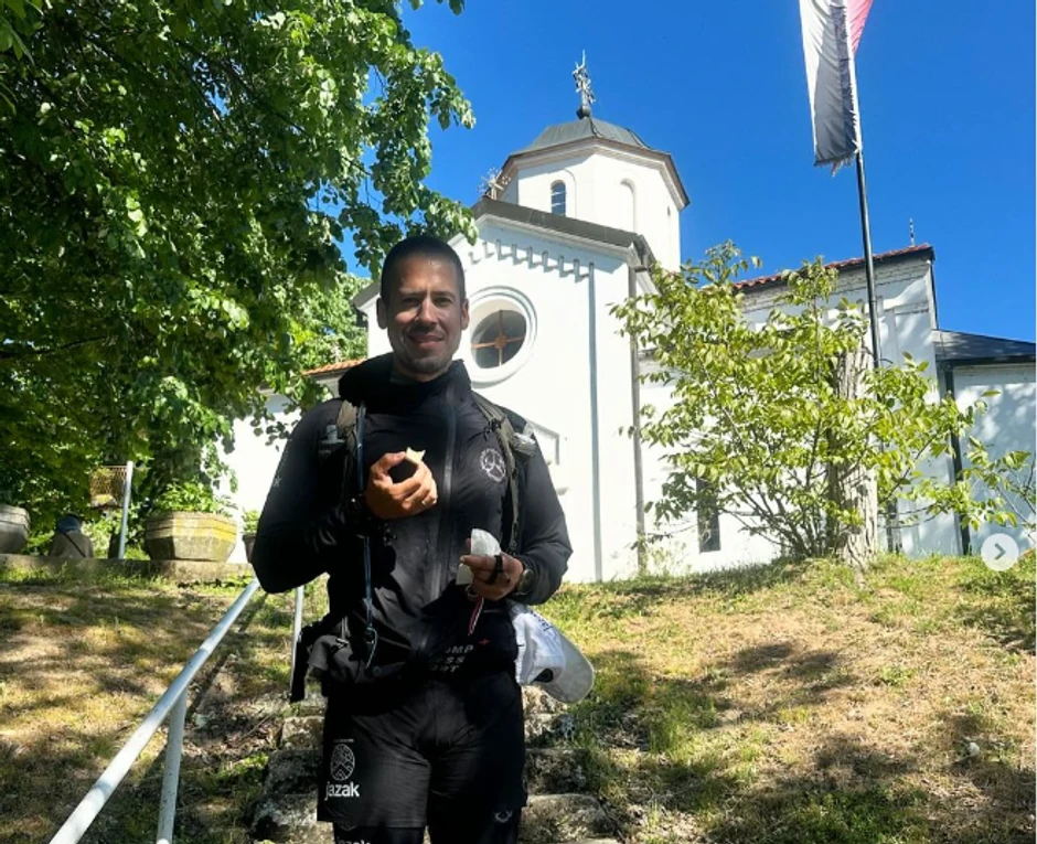 - Ispričaću vam jednu priču, dešavanje koje me je danas veoma obradovalo i okrepilo. U samim pripremama za ovaj put, imao sam želju da nekako uklopim da na Cveti i Vaskrs budem na Svetoj Liturgiji i da se pričestim. Kako sam pred sam put odlučio da ipak imam i svakodnevno trčanje uz brzi hod kao i da nije dobro da pravim neki dan pauze, zbog hlađenja tela i ispadanja iz ritma, odlučio sam da na današnji dan, zbog velikih vrućina ne idem na Liturgiju! Onda bih trebalo da trčim od 11 do 4 po najvećem suncu što bi me mnogo istrošilo a treba gurati 30 dana!
