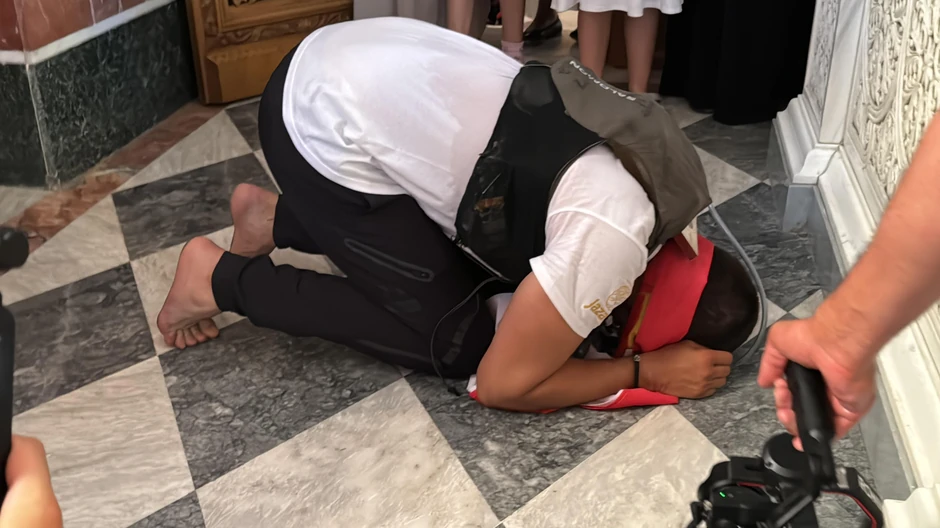 Rokvić je ušao u Hram celivao ikone, pa došao i do moštiju Svetog Nektarija.