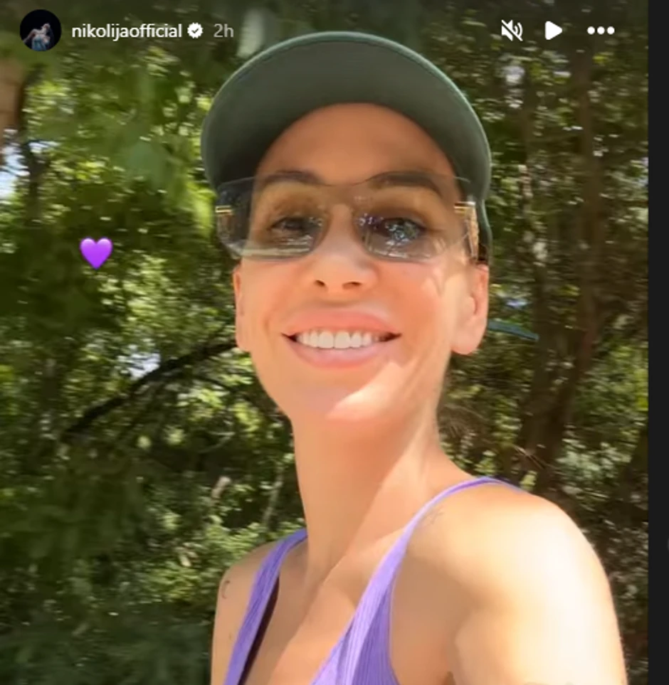 Sada je Nikolija na svom Instagram profilu objavila snimak na kom je pokazala da topli junski dan provodi sama u prirodi. Naime, pevačica je uživala u vožnji rolera, a tom prilikom obukla je top majicu ljubičašte boje kao i šorts, a to je savršeno istaklo njenu figuru.