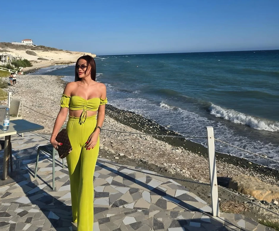 Pozirala je pored mora u zelenom kompletu, ističući figuru.