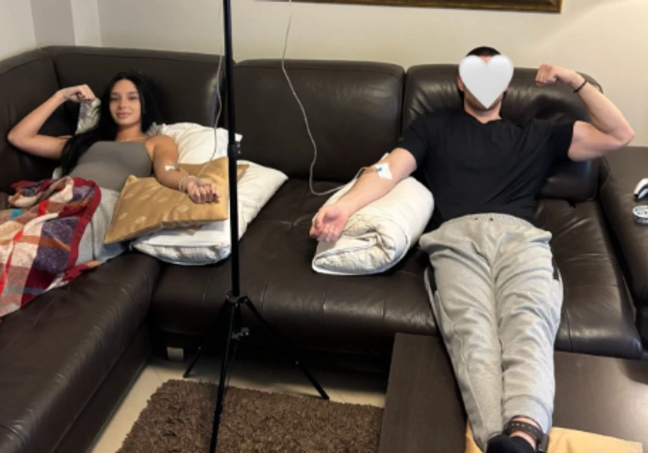 Na fotografiji vidimo kako zajedno primaju infuziju