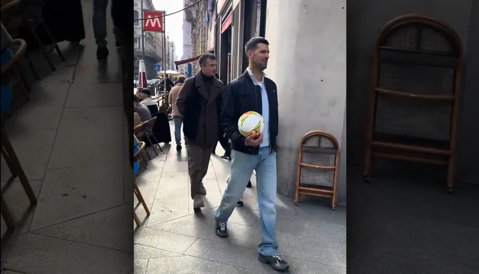 Novak Đoković nosio je farmerke, patike i sportsku jaknu i šetao Milanom. Prolaznici su ga snimali, a on je bio skroz opušten. U ruci je nosio fudbalsku loptu i ležerno provodio vreme vreme.