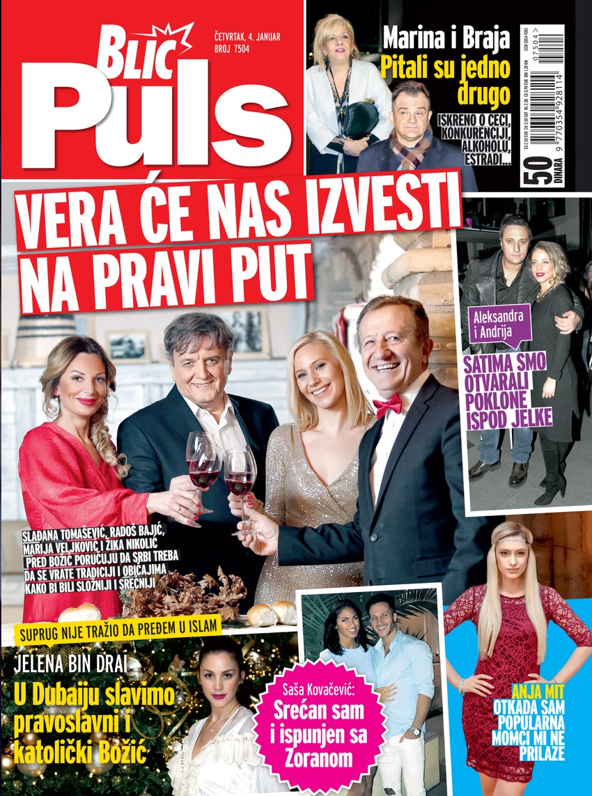 Ko je od njih iz česnice izvukao kovanicu, koga su posipali žitom i zašto poručuju da će nas vera sve izvesti na pravi put imaćete prilike da pročitate u novom broju. O novoj devojci priča Saša Kovačević dok detalje svoje ljubavi sa koleginicom iznosi i Andrija Milošević. Bivša srpska misica, koja se udala za šeika Jelena bin Drai otkriva kako u Dubaiju slave katolički i pravoslavni Božić te da suprug nije tražio od nje da pređe u Islam. Glumica Anja Mit priznaje da joj od kada je postala poznata momci ne prilaze. Tu je i intervju Marine Tucaković i Dragana Brajovića Braje koji su jedno drugo pitali o saradnji sa Cecom, alkoholu, estradi i konkurenciji. Za "Blic puls" pričaju još Marina Tadić, Tijana Dapčević i mnogi drugi, dok smo miljenika tinejdžerki Leona posetili u porodičnoj kući u Jagodini.