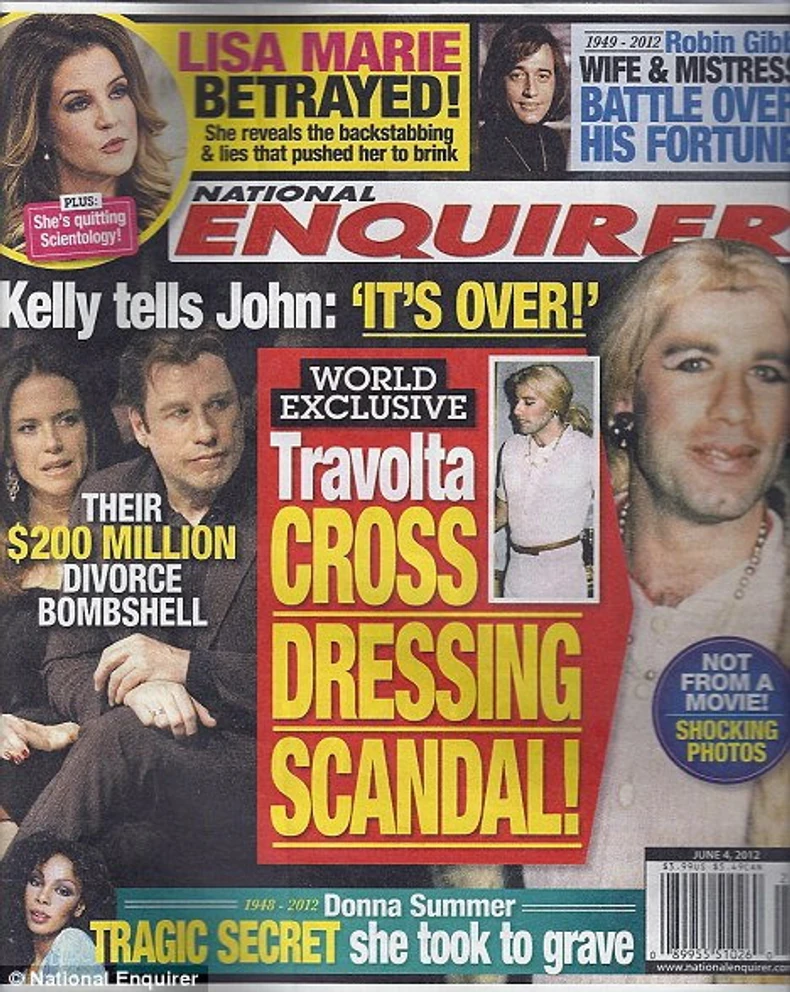 Magazin "National Enquirer" objavio je fotografije našminkanog Travolte u beloj haljini, sa kaišom, ogrlicom, minđušama i perikom uz napomenu da to nije maska za filmsku ulogu. Njegova supruga traži razvod.
