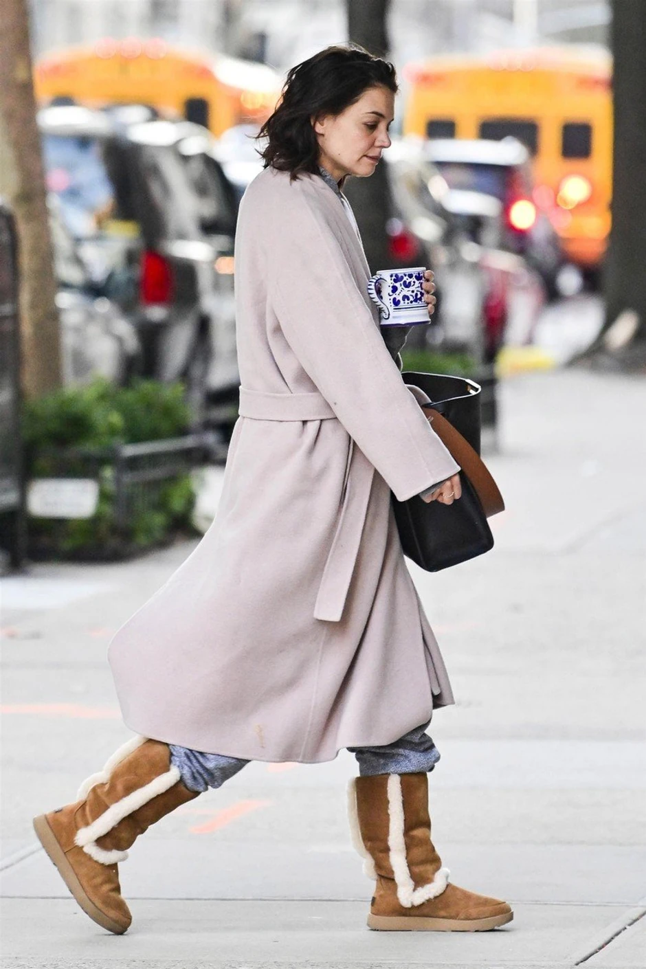 Kejti Holms paparaci su uhvatili dok je bez šminke, u potpuno opuštenom izdanju, nosila kafu koja joj se u jednom trenutku prolila po kaputu.
