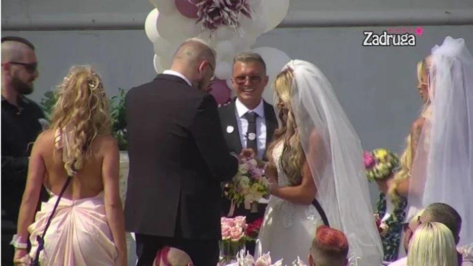 - Malo pažnje molim. Dobar dan gledaocima i prepoštenim zadrugarima, bezgrešnim roditeljima, i cenjenim i poštenim matičarima. Danas smo se okupili na mestu gde korov postoje ruža, gde san postaje java, gde se ne zna ko sa kim spava. Krunisaćemo dve najveće ljubavi na Balkanu. Proživeli smo sa njima za ovih 9 meseci i dobro i zlo, delili parče hleba, izgovarali najgore reči. Ali loše stvari se zaborave. Sve loše stvari koji ste radili, radili ste sami sebi. Išli iz problema u problem, tražili ste se. Jurili za srodnim dušama. Car je našao Dalilu, a Dejan Aleksandru, kome nije jasno da pojasnim. Dalila je bivša Dejana Dragojevića, a buduća Cara, koji je bivši dečko Aleksandre, koja ulazi u brak sa Dejanom, Dalilinim bivšim mužem. Došao je i taj dan, 22. maj, kada će vezati ruke. Prelazimo na svečani deo ceremonije - započeo je matičar Karić.