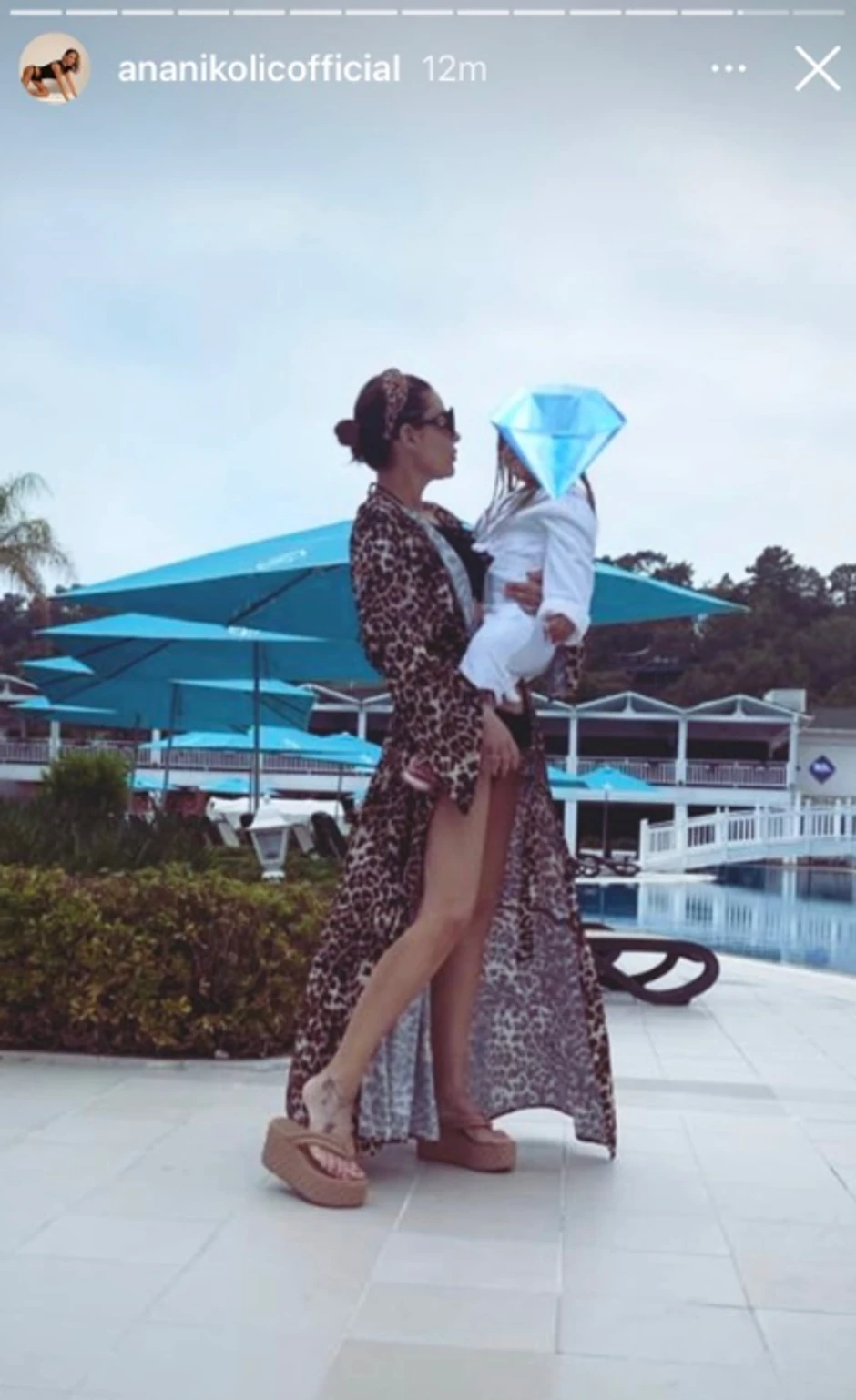 Ana je malu Taru odvela na bazen, pa sa njom pozirala. Pevačica je odabrla dug ogrtač sa tigrastim printom, a ispod je imala crn kupaći kostim. Tara je nakon plivanja obukla svoj bade mantil, pa pozirala uz mamu.