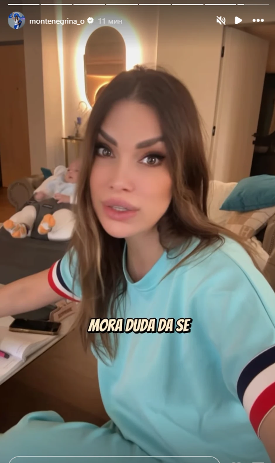 "Dake, kod bebe sve mora da bude perfektno. Evo crtani utišam li malo... Sve mora biti onako kako on misli da treba, iako nema ni tri meseca. Ili sam jednostavno takva majka koja voli da ugađa svome detetu? Uh, mislim da jesam. I šta ću... Nepopravljiva sam. I čak sam juče plakala zbog ove situacije sa mlekom, kako ne jede, kako mojoj drugarici jede 12, ovoj jede 100, meni neće ni 50... Da mi je neko rekao, ljudi, da ću plakati zbog mleka, ne bih mu verovala, ali evo jesam... Pišem kad je šta jeo, i da znate da sam luda, da imam svesku gde pišem kad je beba šta jela, kad sam mu dala šta da pije jer ja to sve zaboravim...", dodala je Crnogorac, a uz to se i našalila: