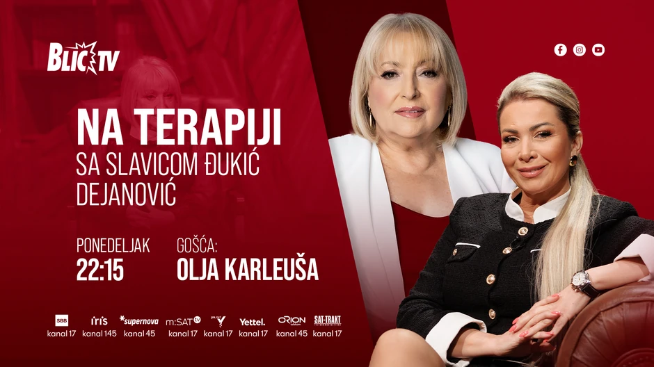 U emisiji "Na terapiji sa Slavicom Đukić Dejanović" koja se emituje večeras, u ponedeljak u 22.15 sati samo na Blic televiziji gošća je pevačica Olja Karleuša. Kroz emotivan razgovor sa profesorkom Đukić Dejanović, Olja priča o detaljima iz privatnog života od najranijeg detinjstva pa sve do danas.
