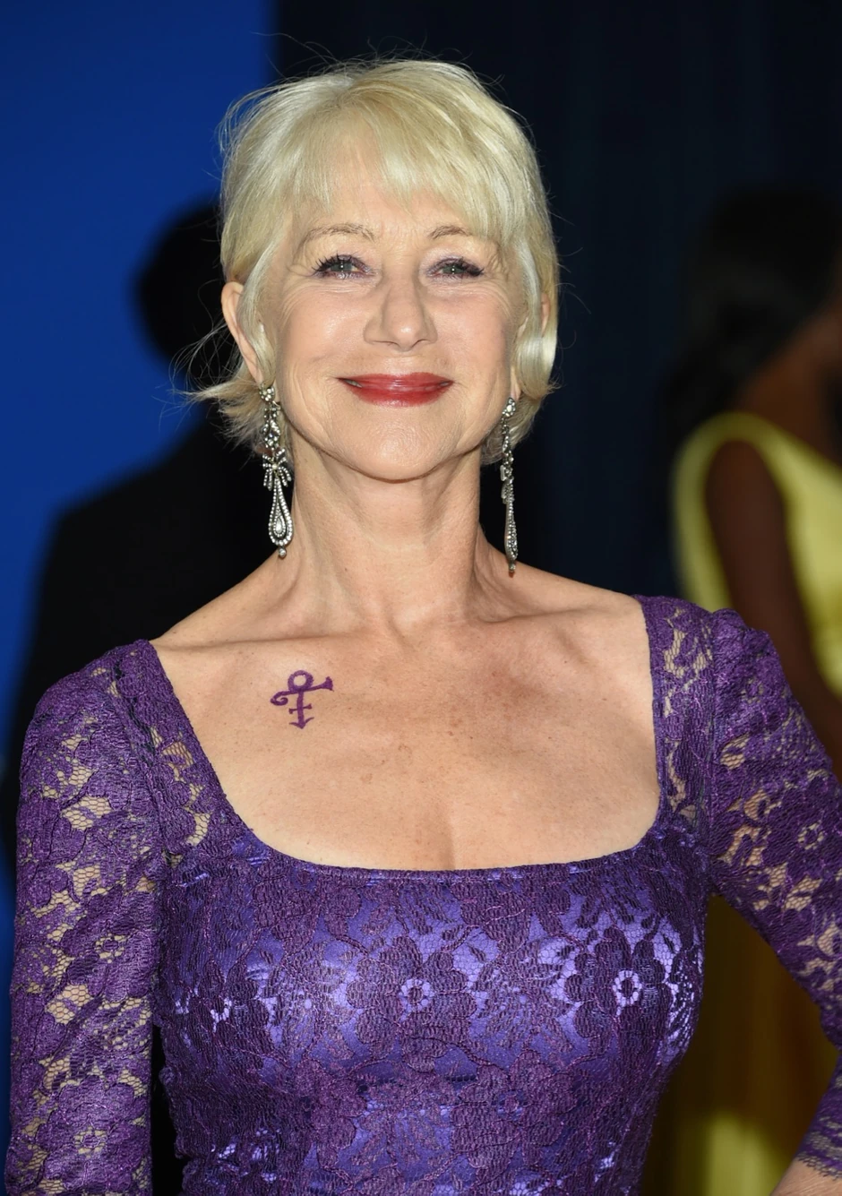Helen je na crveni tepih stigla u pratnji supruga Tejlora Hakforda, a njena duboko dekoltirana haljina otkrila je tetovažu ispod ključne kosti, koju je posvetila Prinsu.
