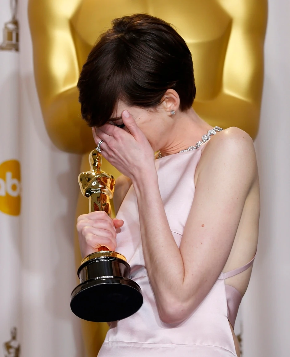 En Hatavej je uspela da na bini ne ispolji emocije i da bez imalo suza primi nagradu koju je osvojila za ulogu u filmu "Les Miserables" 2013. godine.