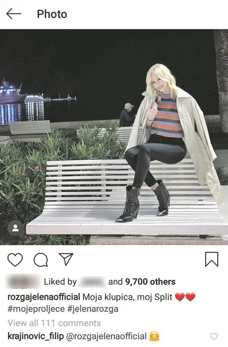 U prilog govori i to da je Filip odreagovao na najnoviju fotografiju pevačice na njenom profilu na Instagramu. Rozga je pokazala pratiocima kako uživa u rodnom Splitu u odevnoj kombinaciji koja ističe njene zanosne noge. Na taj prizor nisu ostali imuni mnogi muškarci, a među njima i naš teniser Krajinović.