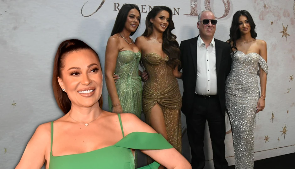 Tara je večeras sijala kao milion dolara u zlatnoj haljini, a ništa manje po lepoti i stasu nije zaostajala druga ćerka Aleksandra, koja je bila u srebrnoj haljini, dok je supruga Anđelija imala dugačku zelenu haljinu.