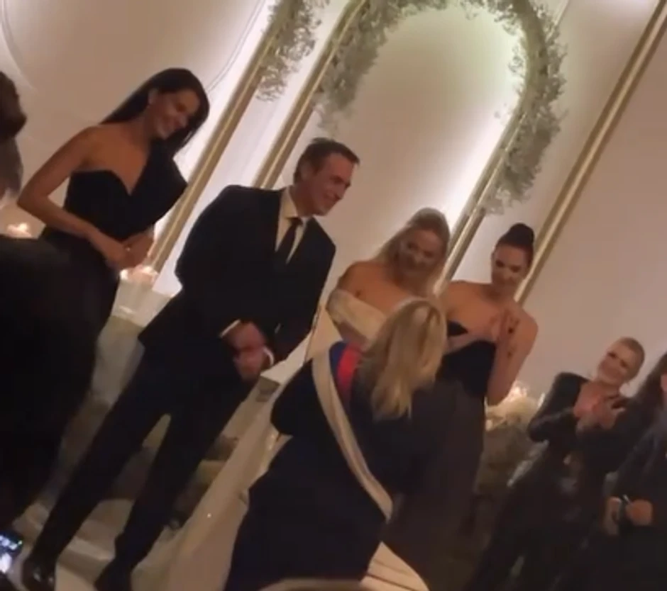 Slavlje je upriličeno u jednom restoranu, u krugu najbližih prijatelja, a kuma im je voditeljka Marija Kilibarda, koja je blistala u dugoj crnoj elegantnoj haljini, sa jednim golim ramenom. Sve joj je stajalo kao saliveno, dok je dugu crnu kosu odlučila da pusti.
