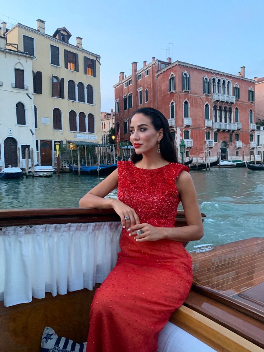 U dugačkoj crvenoj haljini čuvenog kreatora Đorđa Armanija, od svog hotela, do dvorane “Palazzo del Cinema na Lungomare Marconi” Tamara Kalinić došla je gondolom. Čim je kročila na crveni tepih, većina fotoaparata bila je uperena u nju, a Tamara je potom otišla na premijeru filma “Seberg” u kojem glavnu ulogu tumači čuveni Kristen Stjuart.