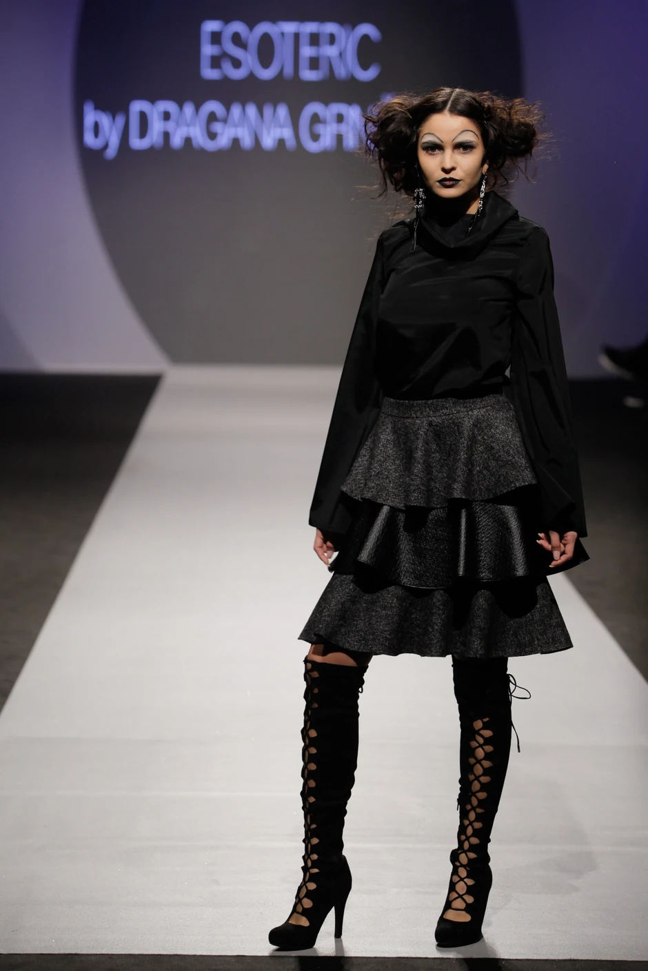 U novoj, jedanaestoj po redu kolekciji brenda Esoteric, dizajnerka Dragana Grnčarski je ostala dosledna sebi. Modele za jesen-zimu 2016/17, koje karakteriše kombinacija vune, buklea, krzna i svile, kao i upadljiv kolorit, prikazala je na neobičan i decentan način.