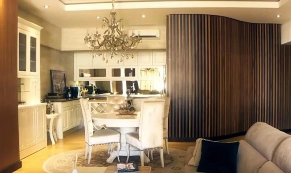 U jednom delu se nalazi beli klavir, kao i klavijatura, a u dnevnoj je i kristalni luster.
