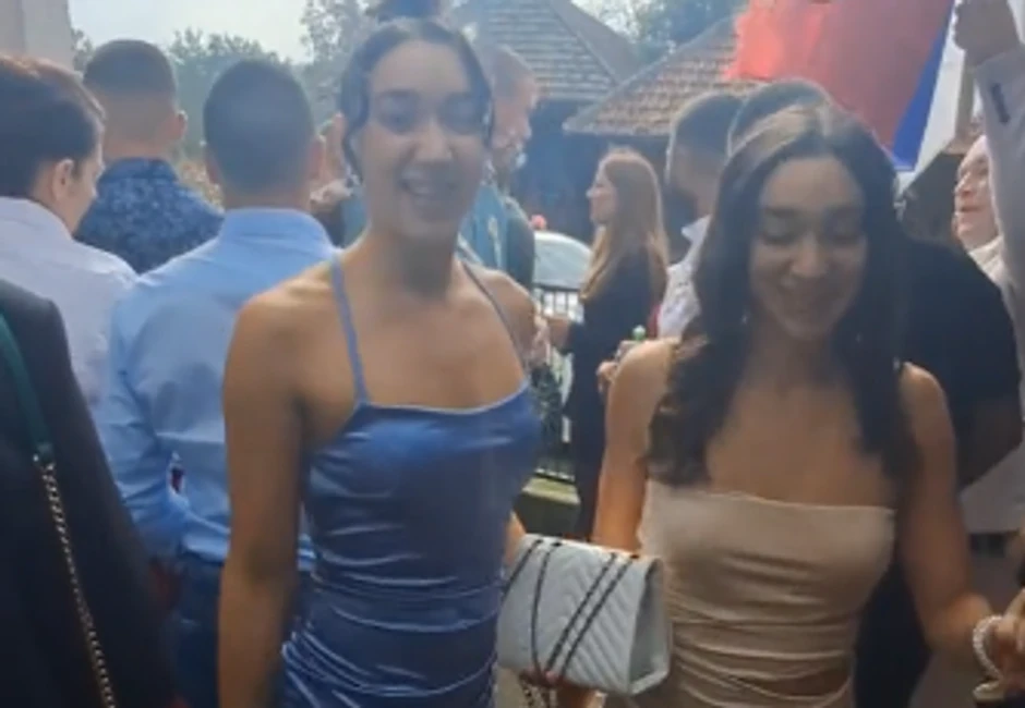 Natalija i Julija su za ovu priliku odabrale satenske haljine u kraljevsko plavoj i bež boji i pokazale snimak na kojem đuskaju upravo na svadbi na kojoj su prvi put.