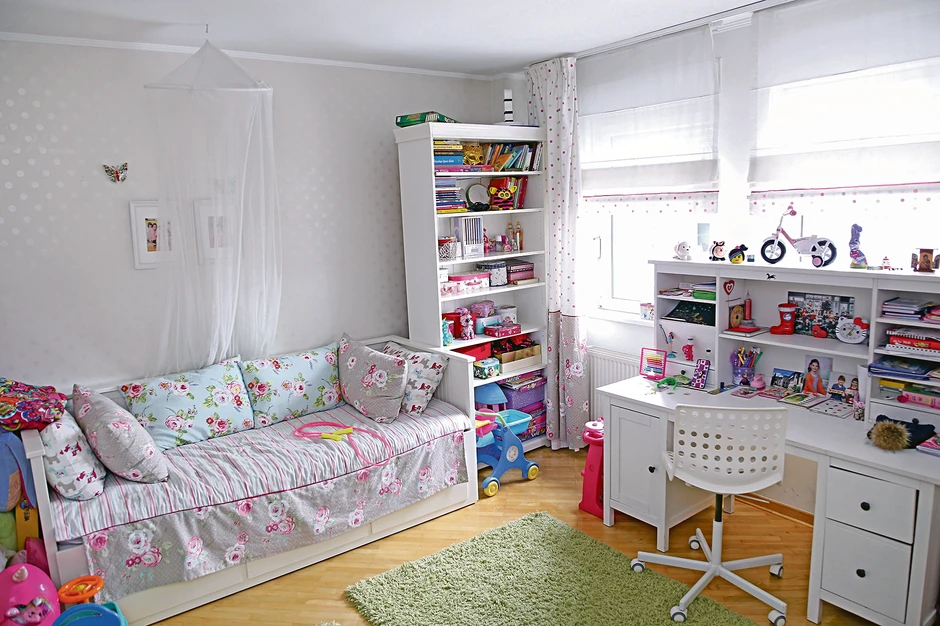 - Mnogo volim da se šminkam i sama sam sebe sredila za ovo slikanje. Pokazaću vam šminku koju mi je doneo Deda Mraz, uđite u moju sobu - govorila je Nika dok nas je sprovodila ka hodniku iz kog se ulazi u dečje sobe. Pravo je njena soba, dok je levo soba njenih sestrica. Obe su opremljene vrlo ukusno, sa detaljima svetlih i nežnih boja.