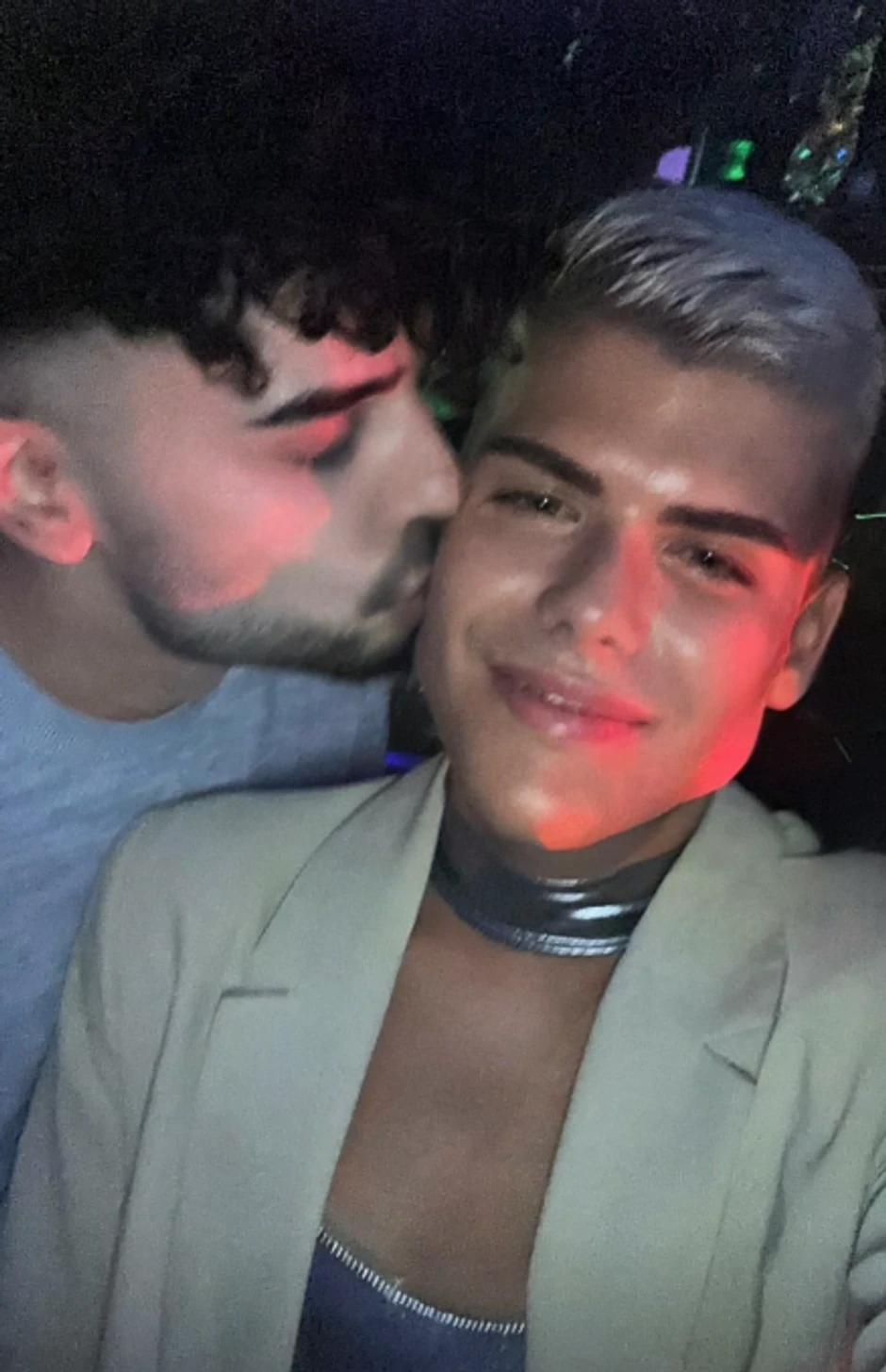 Na slikama se vidi da mladić ima crnu kosu i plave oči, njih dvojica se na fotografiji ljube u obraz.
