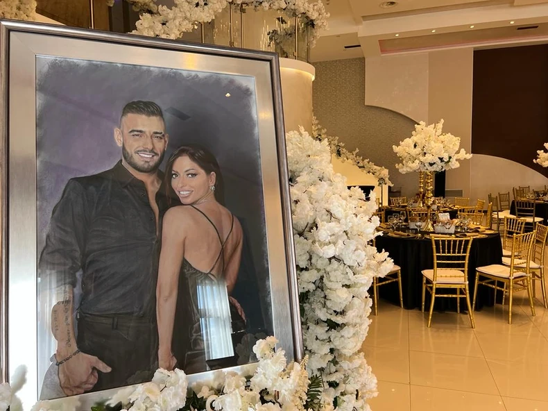 Na samom ulazu u restoran u kom je organizovana svadba nalazi se bogata dekoracija i portret Darka i Katarine.