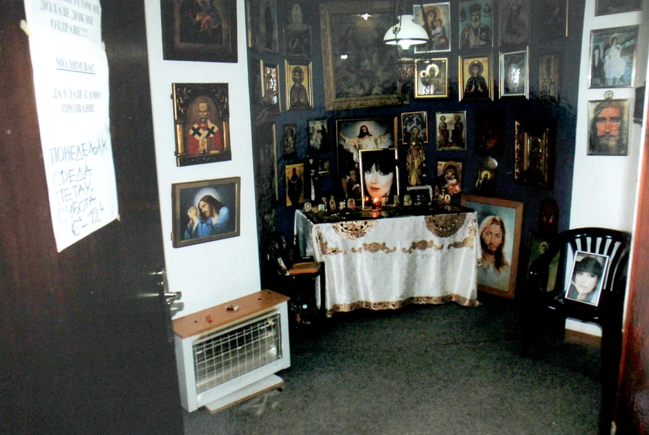 U unutrašnjosti kuće koju je Zoran Marjanović prodao, a u kojoj je živeo sa pokojnom suprugom pevačicom Jelenom Marjanović, posebnu pažnju privlači jedan deo prostorije koji je sav u ikonama, dok je na sredini velika slika pevačice.