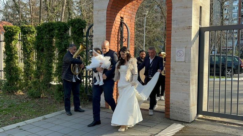 Njih dvoje su otišli na opštinsko venčanje, a potom idu u restoran gde je pevač organizovao gala proslavu.