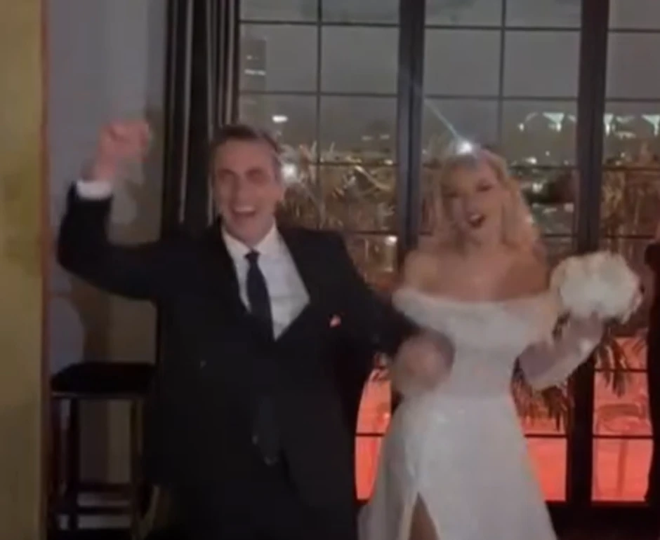 Naime, mlada je blistala u beloj venčanici, koja je imala gola ramena i šlic do kuka, a voditelj nije mogao da sakrije koliko je srećan i raspoložen, a detaljnije pogledajte u videu koji se nalazi u okviru teksta.