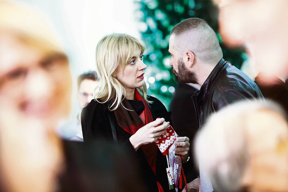 Kako je Nevena završila FDU, bilo je i očekivano da je zateknemo ovde, a voditeljka je ćaskala sa kolegama, ali se nije odvajala od novogodišnje kapice.