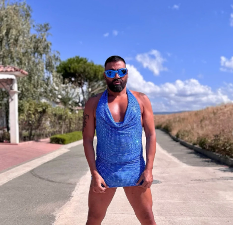 Naime, on je pozirao u plavoj mini suknji, dok je na glavi imao naočare, a preplanuo ten bilo je nešto što su svi redom na društvenim mrežama komentarisali.