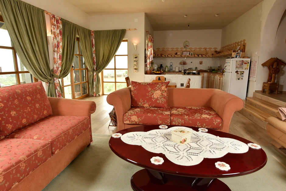 Dok u velikom dvorištu može da se pohvali velikom baštom gde sadi voće i povrće, ista je situacija i u kući. Velika dnevna soba nastavlja se na kuhinju, a ogromna terasa sa koje se pruža pogled na prirodu oduzima dah.