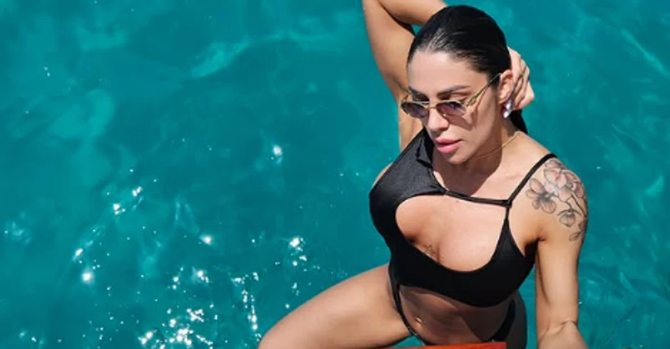 Ona je pozirala u jednodelnom crnom kupaćem kostimu sa prorezima, a pored oblina u prvi plan su došle njene tetovaže na ruci, ali i ona između grudi.