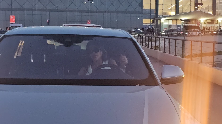 Odvezla se sa aerodroma "Nikola Tesla" u svojoj "besnoj mašini", pa iz kola pozdravila pripadnike sedme sile.