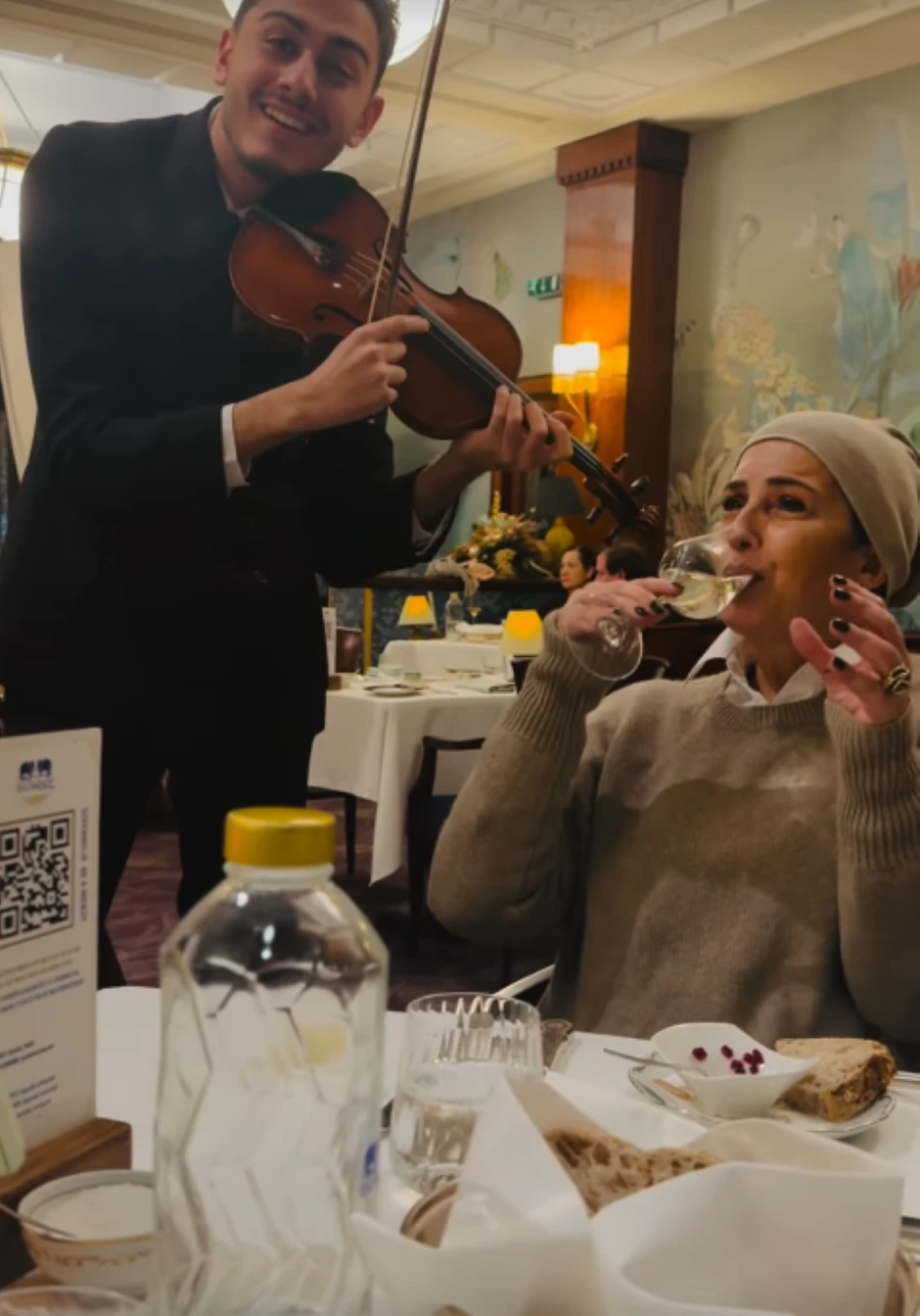 Naša glumica Nataša Ninković objavila je snimak iz provoda na kom se vidi kako uživa i ispija vino, dok joj na večeri violinista svira na uvce.