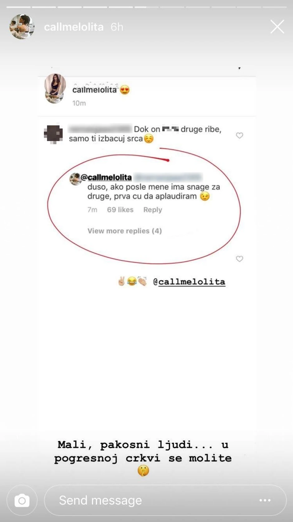 Ovo je zatim podelila sa svima u vidu storija na Instagramu, pa ljutito dodala: - Mali, pakosni ljudi... U pogrešnoj crkvi se molite!
